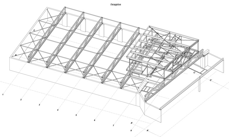 Um die Kräfte abzufangen, wurde zuerst an Stützen gedacht. Doch dies hätte zu einer unklaren Fundation geführt (Flachfundation für den Hauptteil und Einzelfundamente für die Stützen). Schrägstützen erwiesen sich in der Durchführung als zu kompliziert, weshalb die Auskragung als die beste Variante gewählt wurde.