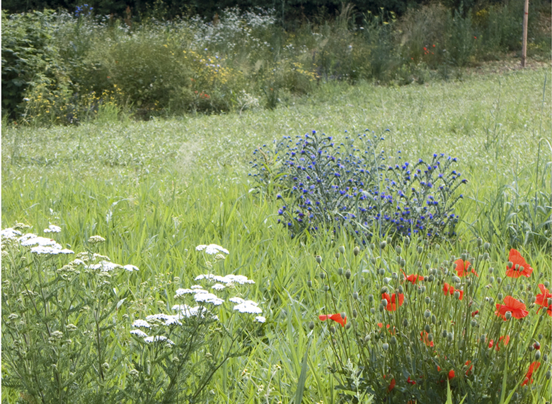 Die forcierte Ausgestaltung des historischen Bauerngartens als „parterre de broderie“ karikiert das Paradoxe seiner Existenz über der unterirdischen Autobahn und seinen musealen Charakter. Der Pflanzgarten, „potager des bourgeois laborieux“, weckt Entfaltungsmöglichkeiten der arbeitsamen Quartierbewohner, der Primelgarten, „verger des oisifs aux carrés de primevères“, lädt zu Picknick und Faulenzen ein. Seltene Obstbaumsorten umfassen den Bauerngarten, lösen sich in die Allmend hinein auf, greifen in den Primelgarten und den Pflanzgarten und binden Historisches und Neues zusammen. Sommerlinden rahmen den Park und zeichnen die städtebauliche Struktur des neuen Quartiers nach. Klammerartig verbinden sie die verschiedenen öffentlichen Punkte im Quartier.