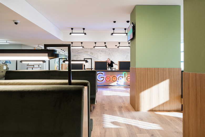 Das Bürogebäude G an der Zürcher Europaallee wird wie viele der neuen Bürogebäude von einem internationalen IT-Grosskonzern genutzt. Das Thema der 7000m2 Räumlichkeiten ist die Zugreise. Verteilt auf alle Bürogeschosse sind Restaurants, Seminarräume, Sitzungszimmer, Fitness, Kino und Grossraumbüros mit Themen bekannter europäischen Städten.