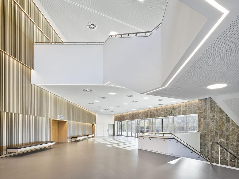Im Inneren wandeln sich das Foyer und der Mehrzwecksaal zu »Alleskönnern« und bieten zukünftig den verschiedenartigen Veranstaltungen optimale Rahmenbedingungen. Energieeffizienz, verbesserte Raumakustik, Steigerung der Behaglichkeit sowie die Schaffung einer hellen und freundlichen Atmosphäre mit einer zeitgemäßen Innenarchitektur runden das Bild ab.