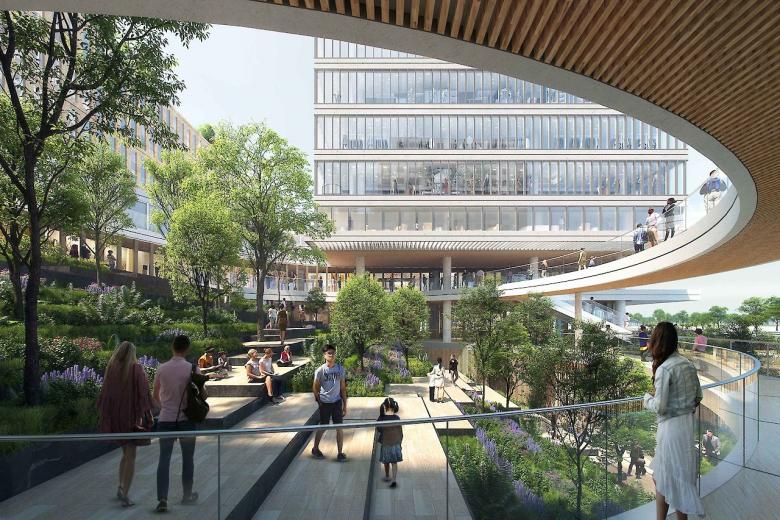 这三个项目的建筑外观是通过移动水平板来定义的,水平板可以清楚地分隔功能块并分解体量。同时,突出的楼层和移动的体量创造了公共无障碍空间,如有遮盖的走道、宽阔开放的楼梯、连接的桥梁和休闲露台。尽管每个项目都遵循了类似的建筑语言,但叠术为每个地块的设计创造了三个独特的概念:“活力连桥”、“立体街坊”和“中央花园”。