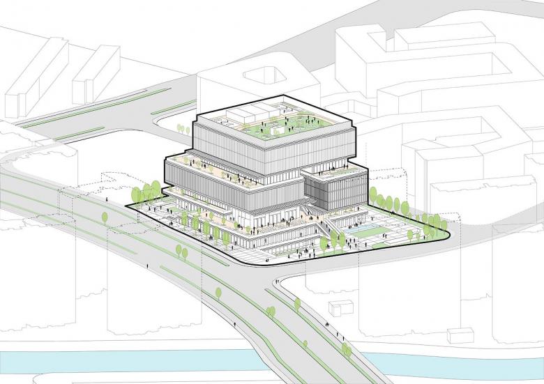在这三个地块的设计方案中,叠术都突出了公共领域的重要性,并研究了既有城市元素的实施情况,如林荫大道、广场,大桥和公园等,最终将它们作为支持和促进公共生活和加强社会互动的工具,以创建一个一体化的社区。这三个项目都有自己的一套核心功能,包括零售、办公、体育设施、医疗、文化设施、市场和养老院等。为了创建一个一体化的社区,应用了三个关键的建筑规划概念:可访问性、连接性和透明度。