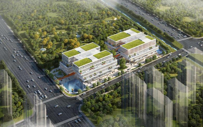 一个阶梯式中央花园被设计为社区中心的绿色心脏,连接了地块内的三个关键功能。该项目总面积为3.4万平方米,由三个建筑块组成,位于一个裙楼顶部。中央圆形庭院是社区的象征和形式,灵感来自具有强大聚集感的西湖。带有可步行平台的中央斜坡公园将地下室连接到第一层,并最终连接到第二层。这一设计为不太有优势的楼层带来了客流量。这三个建筑块被放置在楼的顶部,并可以根据他们的需要进行定位。疗养院大楼朝南为日光通道,零售大楼沿东商业街最大限度地暴露在外,而办公大楼则是北面通往工地的主要入口。