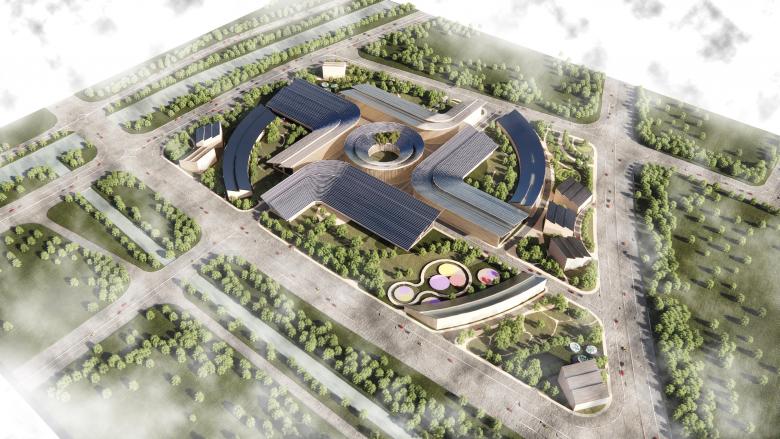 Hydrogen - A storage of endless energy and always in motion - An energetic flow of fusion, electrolysis and synthesis. Beta Realities plans a new kind of factory campus, inspired by the power of green resources. Jinan’s New Energy Industrial Park will make Earth’s oldest source of Energy tangible -in a fully circular realized hydrogen hub. The rise of hydrogen energy marks a shift from our previous decades focus on Green to Blue Energy.