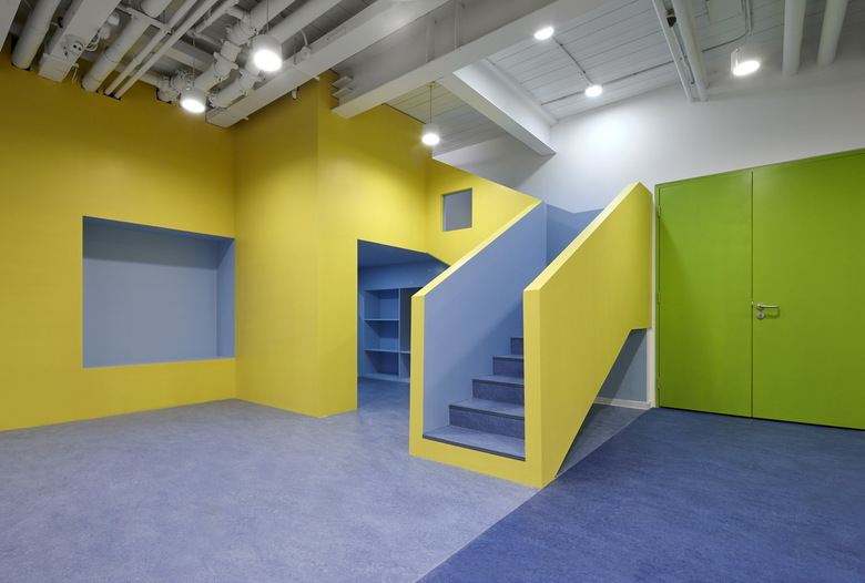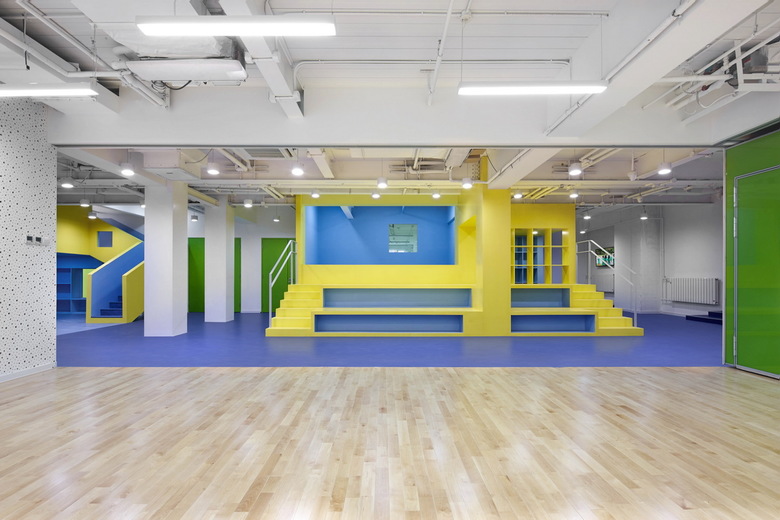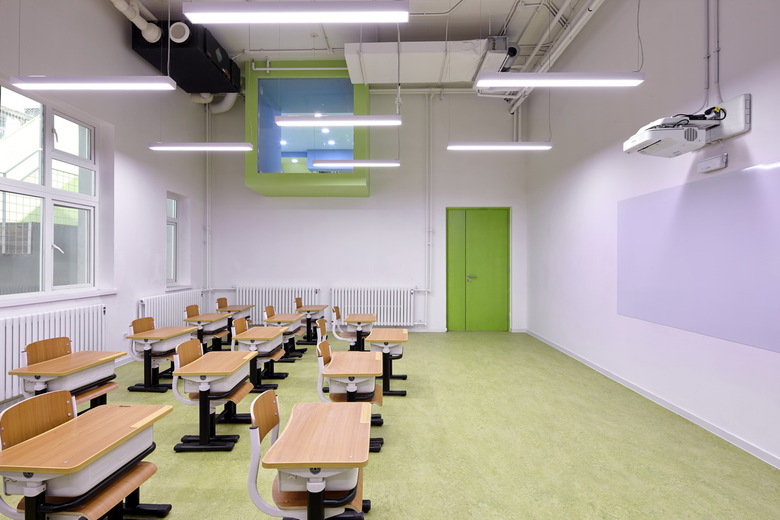 The interior design of the space represents the unique vision of the ETU School – that by providing for the individual health and happiness of teachers and students, the direct interaction between them becomes richer. The multifunctional blocks in the middle of each floor organize impromptu events and can combine with other spaces, like the dance studio, to create podium-like viewing areas. Internally, they create intimate areas and reading nooks for quiet reading and rest.