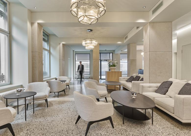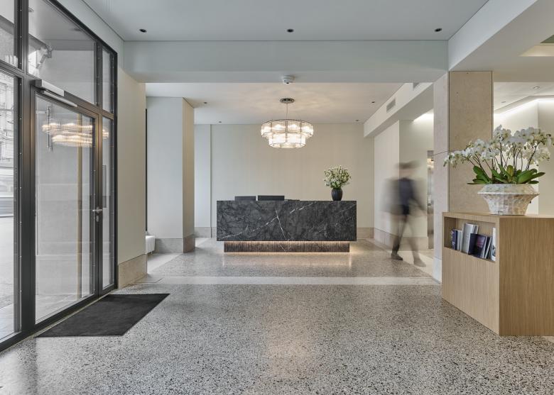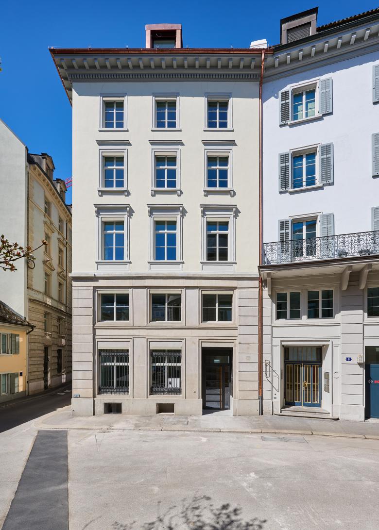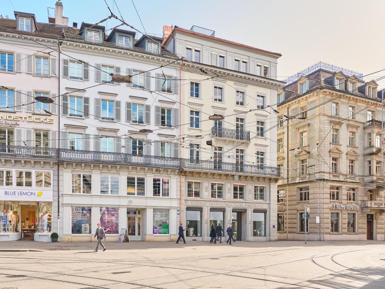 Das Gebäude Paradeplatz 5 wurde als Teil eines Blockrands, der sogenannten Tiefenhöfe, 1856 von einem Baukonsortium um den bedeutenden Architekten Gustav Albert Wegmann errichtet. Als erstes Geschäftshaus am Platz markierte es den Startschuss für die Entwicklung Zürichs als Wirtschaftsmetropole. Auch architektonisch war es Vorreiter: In seiner bauplastischen Reduziertheit und Auflösung des Erdgeschosses im Sinne einer neuen Verkaufsideologie – dem Präsentieren von Waren über die Fassade.