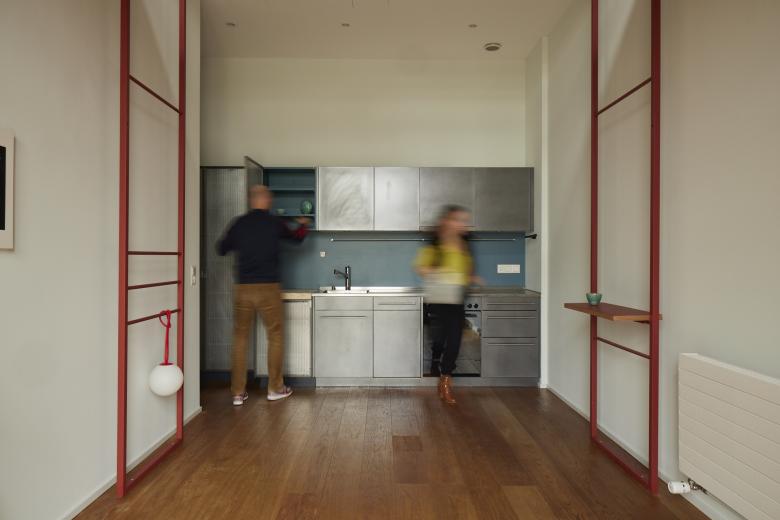 Vivir en la vertical es un proyecto que explora al máximo el aprovechamiento del espacio en un loft de siete metros de altura, donde el crecimiento y la ampliación solo son posibles en altura. Esta ganancia de nuevos espacios de calidad se logra mediante tres elementos: marcos, plataformas y perfiles.