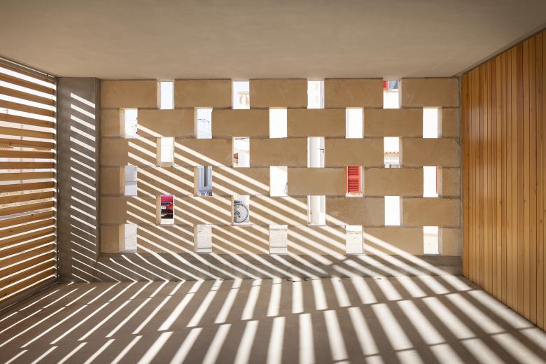 The ground floor, featuring the usual communal spaces, is accessed from the street through a large semi-closed space, intermediate between the public and private realms, serving as a place for exchange, storage, potential parking, etc.