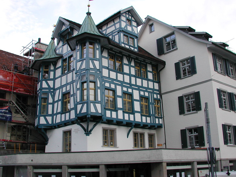 Das „Blaue Haus“ am Klosterplatz gilt als sehr wertvolles historisches Gebäude und steht unter Denkmalschutz. Sein Ursprung reicht bis ins 16.Jh zurück. Durch diverse Umbauten und Renovationen ist das Originalgebäude im 20.Jahrhundert in vielen Bereichen stark beschädigt worden. Zuletzt diente es als reines Geschäftshaus.