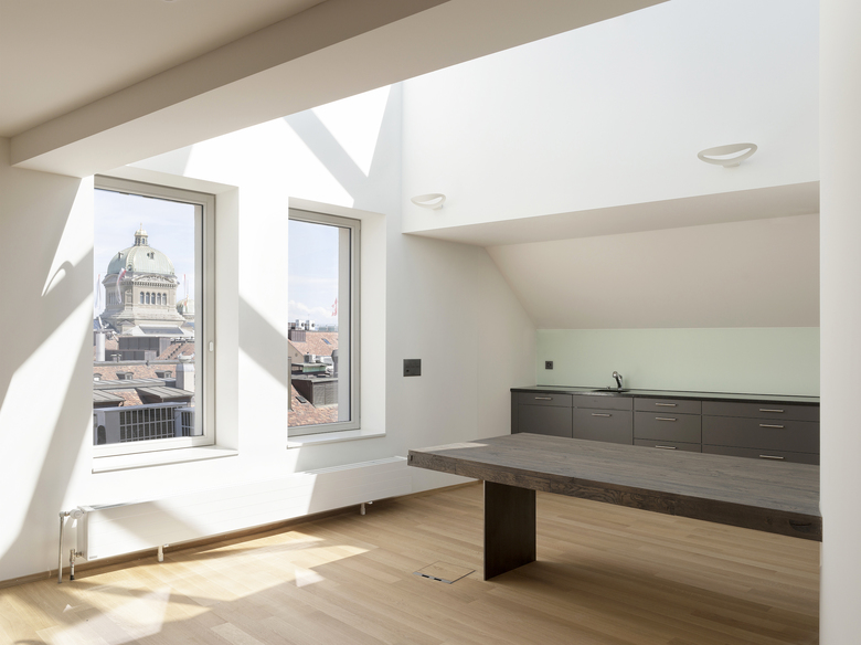 - Bereitstellung von 40 Arbeitsplätzen auf 4 Geschossen sowie Erstellung von Sitzungszimmern und Büros für die Geschäftsleitung Loeb AG/Loeb Holding Ausbau Mansarden- und Dachgeschoss