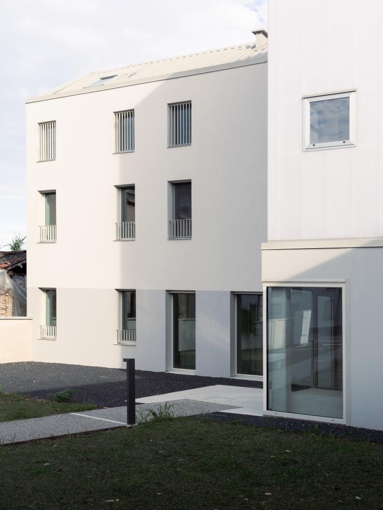 The intervention is organized in two buildings, the taller one intended for self-sufficient elderly homes while the lower and longer volume is hosting a counseling room and an archive. The residential building consists of two fronts that relate differently, with variation of systems, towards the landscape and the urban environment.