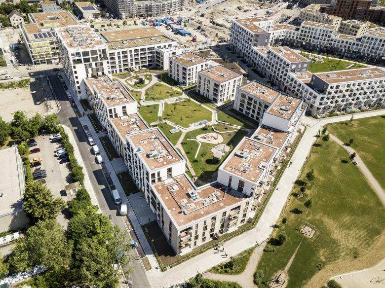 Neubau einer Wohnanlage mit ca. 304 Wohnungen und Tiefgarage in München Pasing in einem Stadtentwicklungsgebiet an der Paul-Gerhardt Allee. Die Gesamtgeschossfläche beträgt ca. 27.100 m². Die Blockbebauung unterteilt sich in 14 Häuser. Hervorstechendes Merkmal ist das „Hochhaus“ mit 9 Geschossen, das den Eingang zu dem neu entstehenden Quartier an der Paul-Gerhardt Allee markiert.