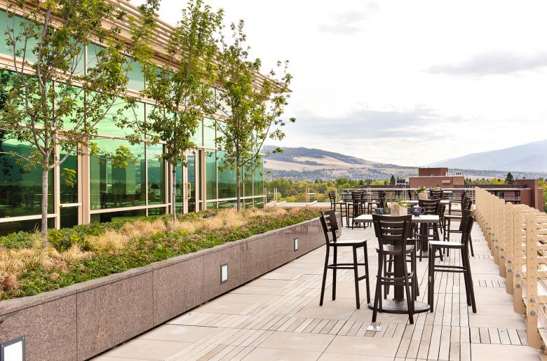 Stockman Bank opened its location in historic downtown Missoula in December 2017. The project is a 67,753 sq. ft., six-story bank with a two-story parking garage with space for 137 vehicles. The top three building levels include outdoor terraces, topped by a sixth-floor roof garden featuring greenery and trees. The rooftop is used for meetings, entertaining, and community activities, and features expansive views of Missoula and surrounding valleys.