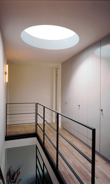 Verdichtetes Bauen, das nicht allein der Rendite verpflichtet ist, vermittelt – wie die Strukturen der Stadt – zwischen öffentlichem und privatem Bereich. Dadurch ist auf die Kontrolle von Transparenz und Abschirmung ein besonderes Augenmerk zu richten. An die internen Wege und Plätze grenzen auf der einen Seite die gekiesten Hofzonen, die durch Backsteinmauern gebildet werden. Dieser private Aussenraum kommuniziert dank der grosszügigen Maueröffnung direkt mit der Küche und verschränkt so innen und aussen.