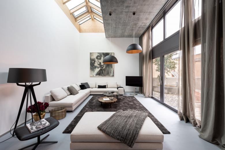 Im ersten Bauabschnitt entstanden acht Lofts mit grosszügigen Innenhöfen und lichtdurchfluteten Räumen. Die Einbindung der denkmalgeschützten Nordfassade verleiht den Räumen zudem einen besonderen Charme. Die Neubauten sind in Bezug auf ihre Höhe und die Erschliessung in die bestehende Struktur des Areals eingewoben. Unter den neuen Atrium-Lofthäusern wurden die Parkplätze, welche auf dem Areal dringend benötigt wurden in der Tiefgarage, mit Abfahrt im Kopfbau zur Walzmühlestrasse orientiert, zur Verfügung gestellt.