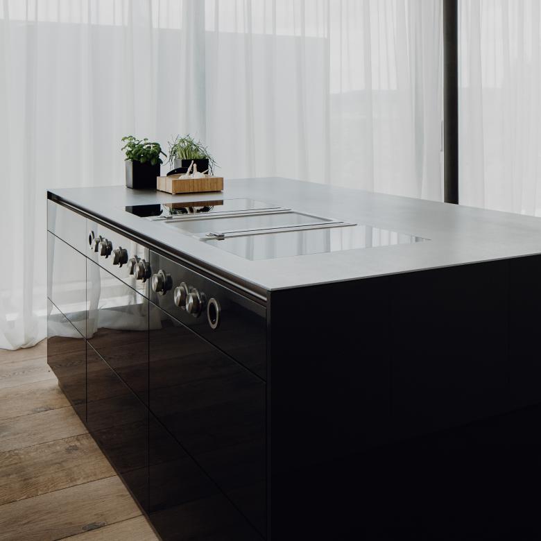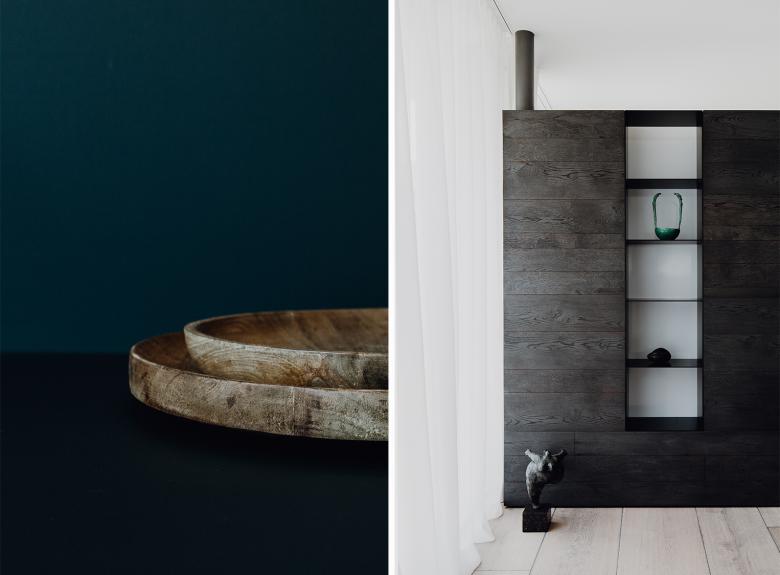 Ein zentrales Entwurfsthema war, für die Werke der künstlerisch geprägten Bauherrin Orte zu schaffen. So finden sich im gesamten Hausinneren Skulpturen und Gemälde, die dem zeitlosen, modernen Stil des Hauses seine ganz persönliche Note verleihen. Nur wenige Materialien wie der weiße Fließestrich, der nicht nur am Boden sondern auch auf Möbeln Verwendung findet, und die speziell angefertigten Holzdielen bieten den stilvollen Rahmen dafür.