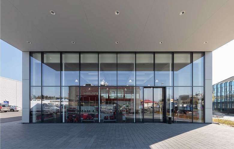 Die drei unterschiedlichen Größenvarianten ermöglichen ein einheitliches Store-Konzept, das sich der Beschaffenheit unterschiedlicher Grundstücksgrößen anpassen kann. Ein klares und modernes Raumkonzept bietet neben einer markanten Optik, viel Licht auch eine unmittelbare Orientierung in allen Corporate Hilti-Stores.