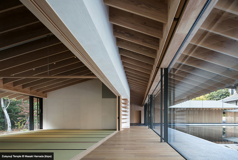 The building is supported by a combination steel and wooden frame. The wooden joists and louvers on the exterior resonate with each other and create a geometric pattern that highlights the uniqueness of Obaku Sect.