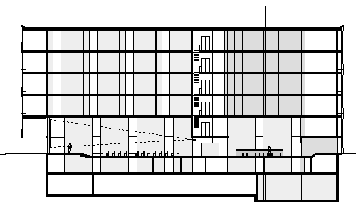 Die Innovation unseres Beitrags besteht in der räumlichen Trennung von Schreibarbeitsplätzen und Experimentierzonen. Die frei im Grundriss plazierten Blöcke der eigentlichen Labors scheiden verschiedene Bereiche für Büroarbeitsplätze aus. Dank der geringen Raumtiefe dieser Zonen geniessen alle Arbeitsplätze direktes Tageslicht aber auch kurze Kommunikationswege wie im Open Space Office.