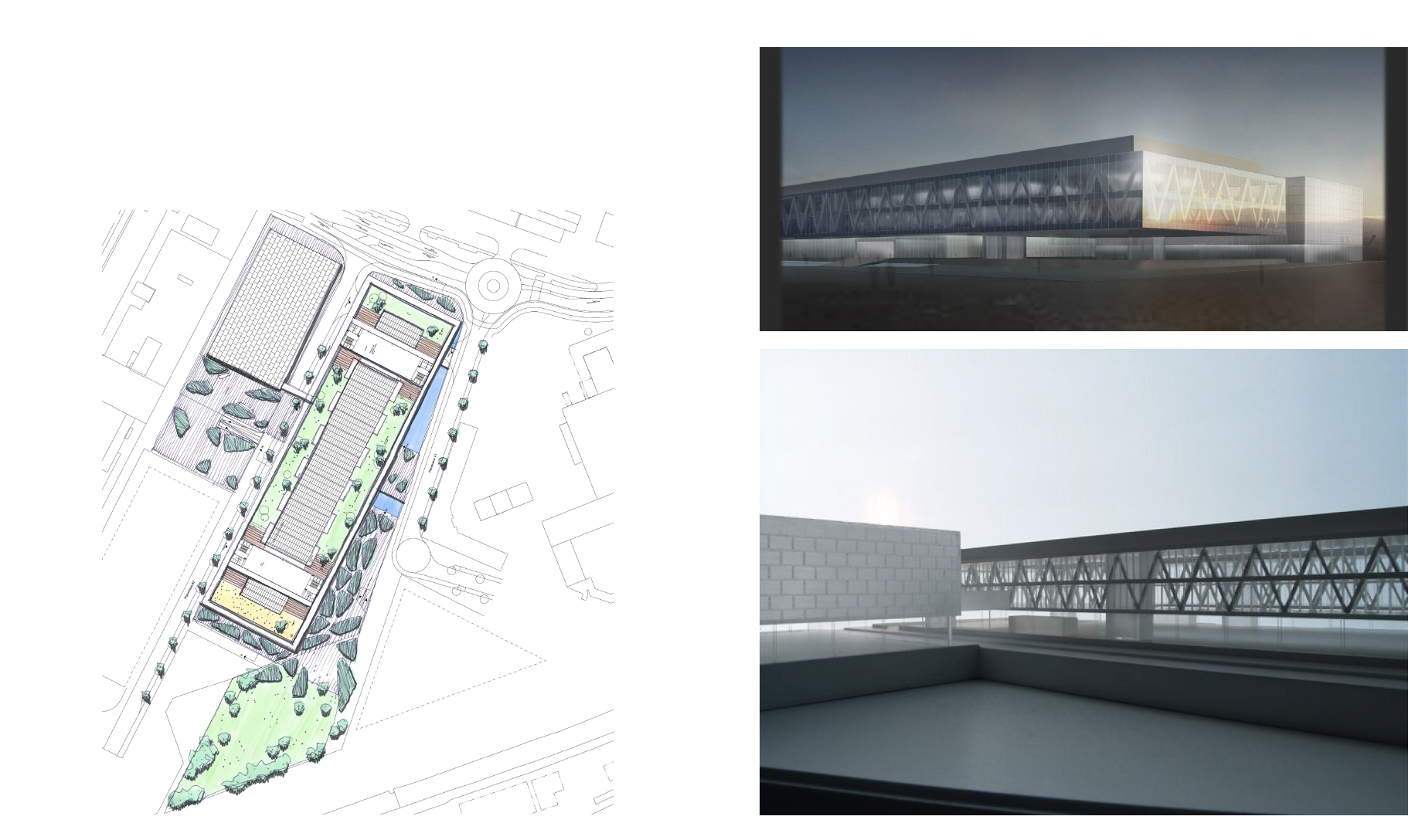 Der Entwurf sah vor, alle Funktionen unter einem Dach zu vereinen. Geplant war ein dreigeschossiges Gebäude mit einer Länge von 170 m und einer Breite von 50 m. Im Erdgeschoß hätte sich der Produktionsbereich befunden und in den beiden Stockwerken darüber die Büros für die Verwaltung. Die Erdgeschosszone ist stützenfrei und vollständig verglast. Sie bildet einen durchsichtigen Sockel, über dem die beiden Bürogeschossen schweben. Das transparente Erdgeschoss öffnet sich zur Stadt und bietet Einblicke in das Innere der Produktion.