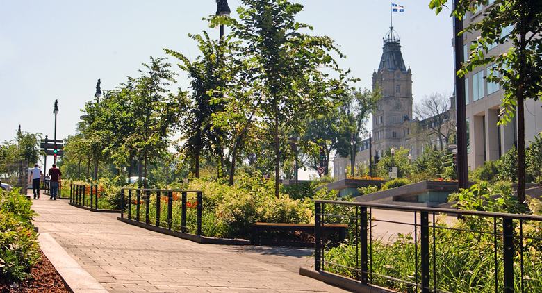 WAA was responsible for the redesign of Honoré-Mercier Avenue, a wide thoroughfare that leads up to Parliament Hill in Quebec City. The addition of festive sculptural elements, street trees, green spaces, floral displays, creative lighting and belvederes along with the integration of attractive and safe pedestrian sidewalks and crosswalks enliven this formerly bleak, dangerous and unpleasant thoroughfare.