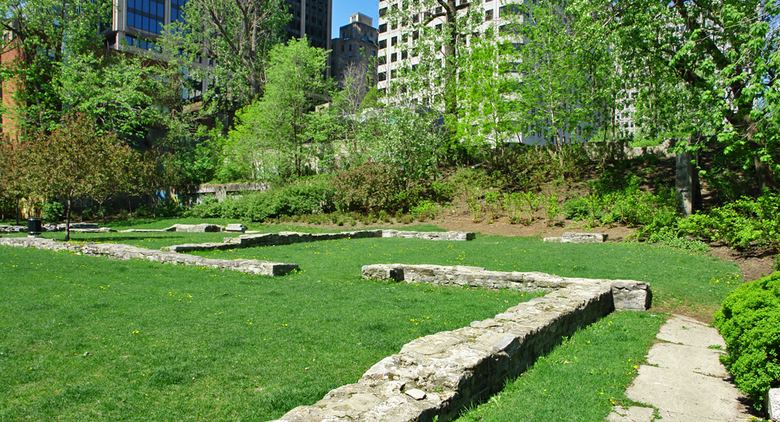 WAA’s challenge was to transform a parking lot, located at the bottom of a hill behind St. Patrick’s Basilica, into a public green space. The goal was to re-establish the physical relationship of the church façade to its urban environment and to create an urban garden respectful of the site’s history. The park’s design captures the genus loci of the site by integrating pathways that connect the lower road to the entrance of the church. Part of the park recreates a portion of the original garden located onsite designed by Frederick Todd, Canada’s first resident landscape architect, in the 1930s. Another part of the park features the exposed foundations of a hostel for Irish immigrants that once stood on the site. With careful excavation it was possible to remove the soil covering the walls. They are now used as benches and tables for urbanites who come to enjoy the greenery of St. Patrick’s Park in the heart of the city.