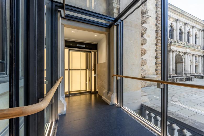 Mit dem Personenaufzug werden im Bereich der Bürgerschaft insgesamt acht Geschosse mit zehn Zugängen über 27m Förderhöhe zugänglich. In Verbindung mit einer besonderen Hubtreppe und Hubliften sind so die Besuchergalerie im Plenarsaal, der Festsaal mit Galerie, wichtige Besprechungsräume und Abgeordnetenbüros ebenso erreichbar wie neu erstellte barrierefreie WC-Anlagen und Wickelräume.