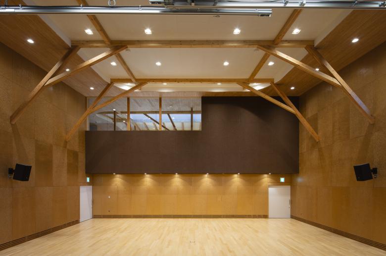 豊田市に28館ある交流館は、全館共通の貸室(有料)と図書コーナーなどの共用部に、地域色の濃い空間を加えた構成が標準で、地域の事情に応じて、他の施設と合築したりする。歴史、文化、風俗の継承や、生涯学習の場など、地域ごとに交流館をつくる意義は大きい。特に高齢化が進む地域には、子供たちや若い人々の活動を誘発する場が必要だと考えた。ゆえに、本計画では近隣の教育施設などにヒアリングを重ね、自由に使える平土間の小ホール、展示ギャラリーと、閉館時にも使えるバス待合を組み込んだ。