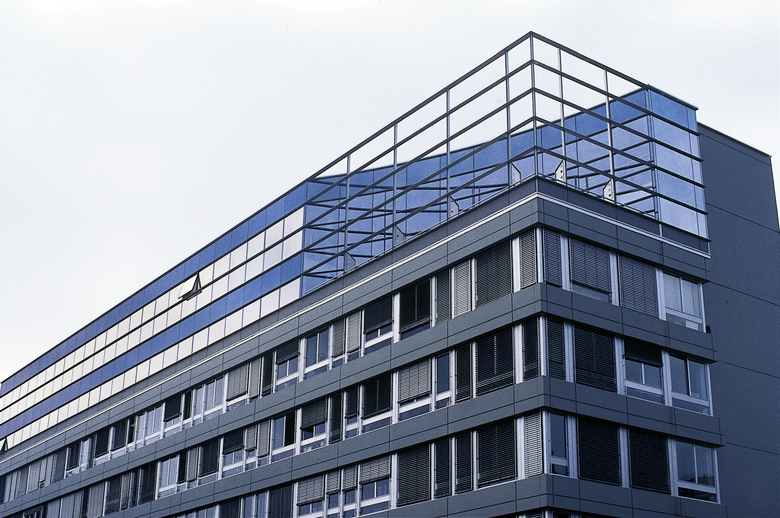 Tous ces éléments réunis débouchent sur un projet dont la volumétrie reste bien équilibrée, tout en accordant à la partie neuve de la construction une définition claire et parfaitement lisible : les façades de ces nouveaux étages se distinguent par leur structure moderne, en aluminium éloxé et par des vitrages réfléchissants, alignés sur le même plan que les contrecœurs.