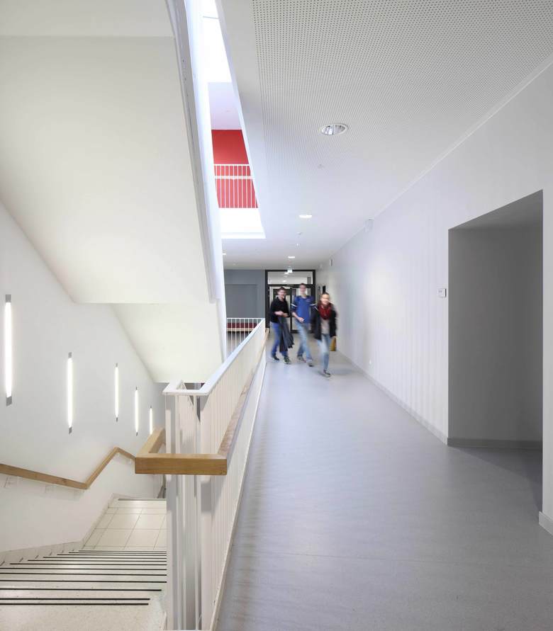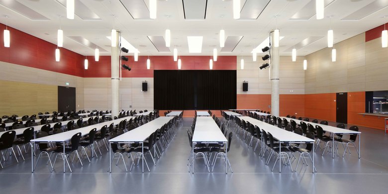 Der Neubau schließt an den Bestand an entwickelt ihn zu einer harmonischen Gesamtform weiter. Nach Abschluss der Baumaßnahmen sorgen Innenhöfe sorgen für eine einfache Orientierung im Schulgebäude und eine optimale Belichtung der Erschließungsflächen. Ein Schulcampus entsteht, der eine räumliche und atmosphärische Vielfalt bietet. Alle Unterrichtsräume und die Mensa sind nach dem Umbau in einem zentralen Gebäude untergebracht. Dies unterstützt das Konzept der inklusiven Beschulung. Die Mensa, welche auch als Veranstaltungsraum mit Kleinbühne genutzt werden kann, öffnet sich zum Pausenhof.