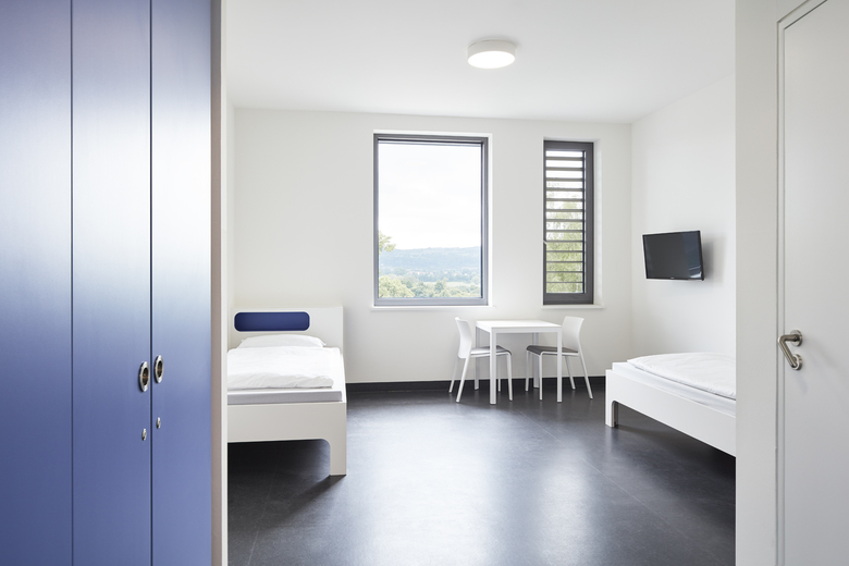 Die neuen Stations- und Eingangsgebäude nutzen geschickt die Hanglage und ordnen mehrere Funktionen nachhaltig und flexibel. Zusammen mit dem bestehenden Stationsgebäude bildet das Ensemble eine neue kompakte Sicherungseinheit. Der langgestreckte Stationsneubau wird Teil der Sicherungsanlage und minimiert so optisch die sichtbaren Zäune, was zum einen dem Klinikareal und zum anderen dem städtebaulichen Umfeld zu Gute kommen. Insgesamt 60 psychisch kranke und suchtkranke Straftäter werden auf drei Stationen im Neubau zur Behandlung und Sicherung untergebracht.