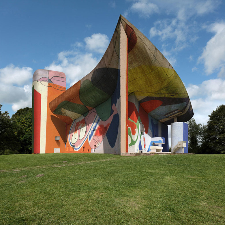 Oops, he did it again: For the second time, "conceptual photographer" Xavier Delory has virtually changed the architecture of a Le Corbusier building, covering the surfaces of the Chapel in Ronchamp with murals from Villa E-1027 on the Côte d’Azur.