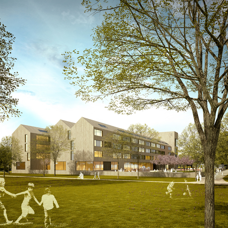 Im Rahmen eines begrenzt offenen Wettbewerbs für den Neubau einer Gesamtschule in der Ossietzkystrasse im Kölner Stadtteil Nippes wurde ein Planungsbeitrag erstellt.