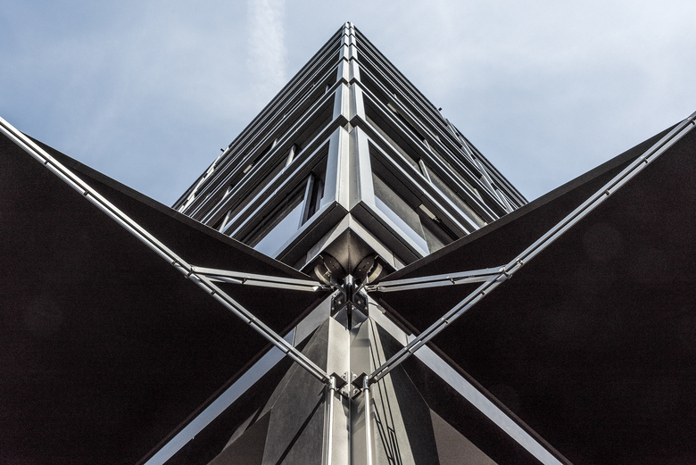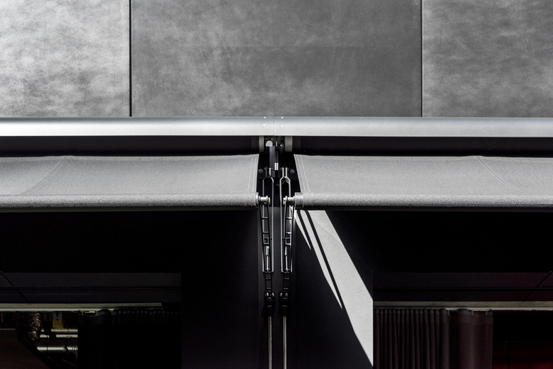 Die Fenster im Sockelgeschoss des NENI Restaurants und den angrenzenden Gewerben wurden mit speziellen Schaufensterstoren ausgerüstet.