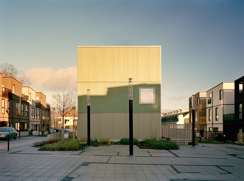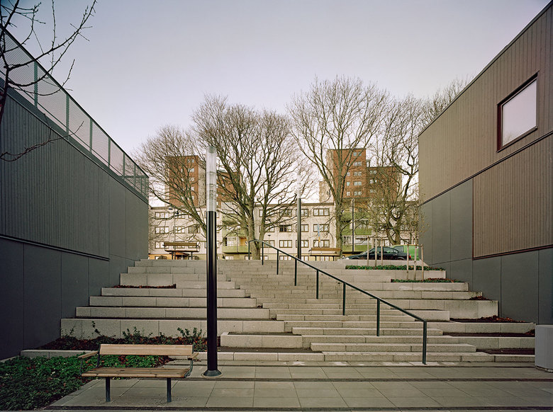 Fittja Terraces is an urban regeneration project, in the southern suburbs of Stockholm. Central Fittja was planned and built in the early 1970´s, and is a socially problematic area with a high degree of social housing. The client joined the municipality’s aim to vitalise and develop the area, with a deliberate focus on mixing different sizes of households, forms of tenure and complementing the area's homogeneous nature. The overall aim was to create opportunities for a housing career locally, in order to achieve long-term socio-economic possibilities and vibrant supportive public space.  The project proved very popular: all units sold quickly and 80% of the buyers were local residents.