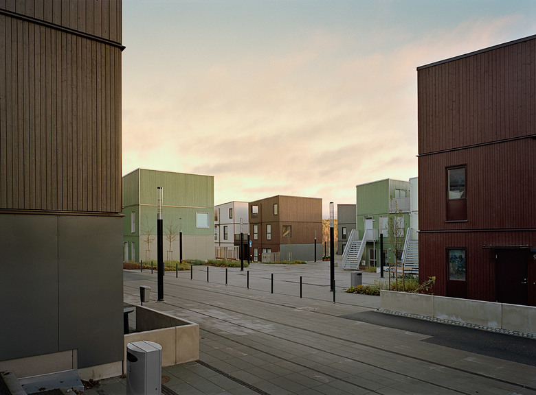 The housing units vary from one-room studios to efficient 4-6 room apartments and terraced houses. A focus has been on generation-living strategies, offering possibilities for large families and relatives to live within the area. New streets are shared-space environments, where the surface treatment from the diagonal space extends onto adjacent streets.