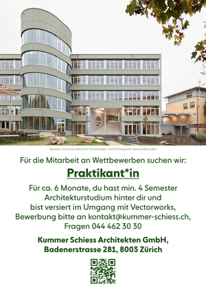Luc Kummer und Martin Schiess sind laut Jury erfolgreiche Protagonisten des dualen Bildungssystems der Schweiz. Nach Hochbauzeichner-Berufslehre, etlichen Jahren Berufspraxis, Schule, Studium und Auslandaufenthalten möchten sich die beiden jungen Herren auf den architektonischen Entwurf in Reinform konzentrieren und an einer eigenen Architektur arbeiten. Entwurf als Forschung – das ist bei KUMMER/SCHIESS keine Platitüde, sondern Programm.