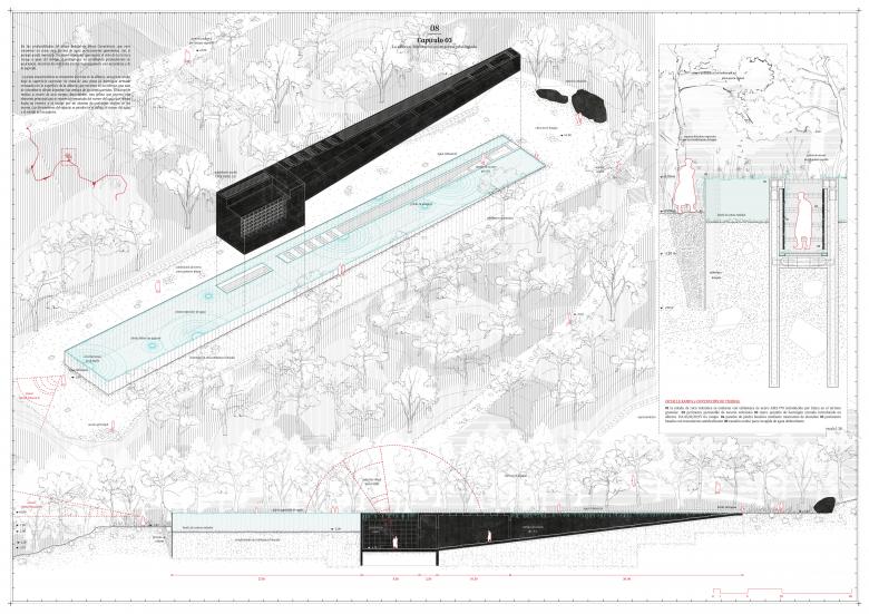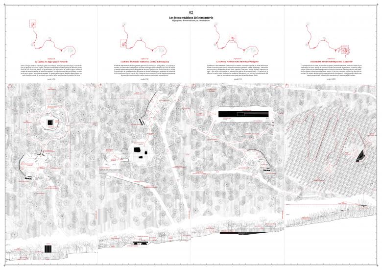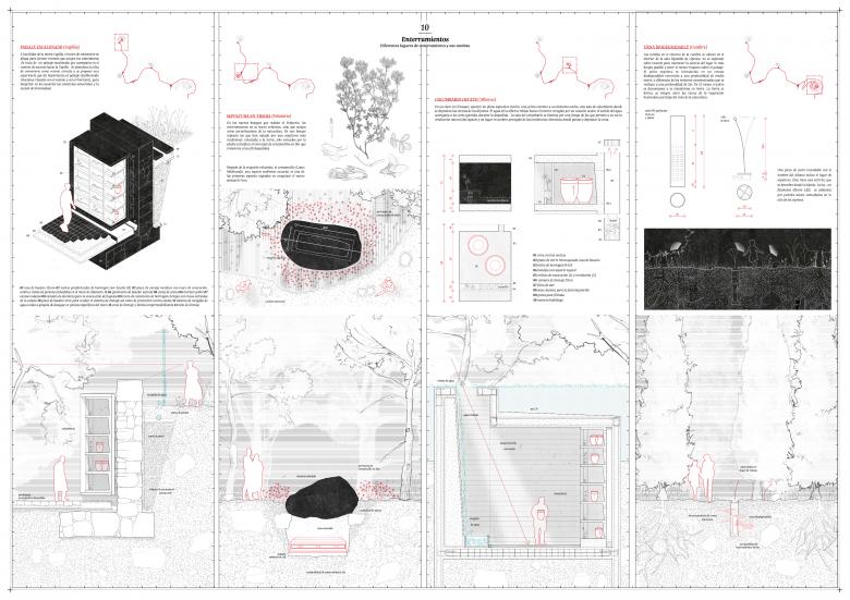 These are not merely functional spaces, but subtle gestures in the landscape that interact with natural elements, vegetation, and the disturbances of the environment, forming a processional ritual that connects to the transcendent essence of mourning.