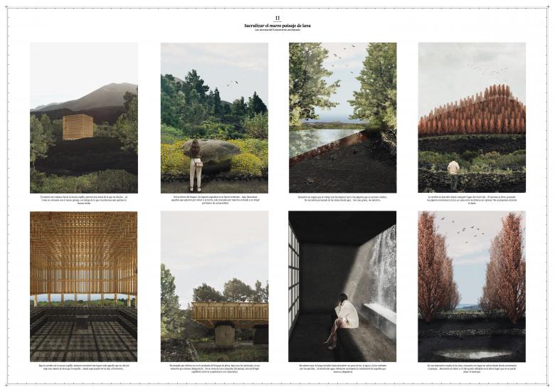 In 2021, the eruption of the Cumbre Vieja volcano radically transformed the island of La Palma, destroying its ecosystems and creating a new lava landscape. The affected area, once home to a rich environment shaped by volcanic activity, now faces the challenge of rebuilding. This devastation calls for an architecture that emerges from the transformed landscape, exploring how to regenerate and coexist within this evolving territory while addressing new social and environmental conditions post-catastrophe.