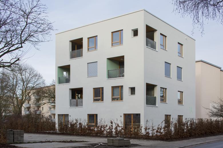 Mit den Mehrfamilienhäusern "Bremer Punkt" wurde ein serieller Gebäudetyp zur Nachverdichtung von Wohnsiedlungen tragend durch uns mitgestaltet. In Bremen entstanden so in den vergangenen Jahren einige der 14x14m großen Mehrfamilienhäuser im KfW 55-Standard. Tragwerk und Konstruktion wurden für die Gebäude im Hinblick auf Serielllität weiterentwickelt. Der kostengünstig zu realisierende Kubus wurde in einer Auswahl von zehn unterschiedlichen Grundrisstypen geplant. Sie bieten Raum für unterschiedliche Wohnformen und ermöglichen durch seine minimalistische Architektur eine behutsame Aufwertung des jeweiligen Umfelds.