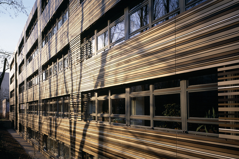 Zwei Schulen der Typenserie SK-Berlin aus den 1960-iger Jahren erhielten eine innovative Fassade aus farbig eloxierten Aluminium-Hohlprofilen. Die Bernhard-Rose-Schule, (ursprünglich Axel-Wedding-Oberschule) wurde 1965-66 als Prototyp der Reihe SK-Berlin von Gerhard Hölke erbaut. Der Schulbau und auch die benachbarte Blumen-Grundschule sind weitgehend erhalten und wurden vom Bezirksamt Friedrichshain-Kreuzberg als denkmalwürdig eingestuft. Ein gestalterisches Ziel der Sanierung war daher der Erhalt wesentlicher Merkmale der ursprünglichen Plattenbauten und die ablesbare Gestaltung der neuen “Haut”. Die Baukörper behielten ihre Identität und bleiben auch für spätere Generationen als Zeitzeugen erhalten.