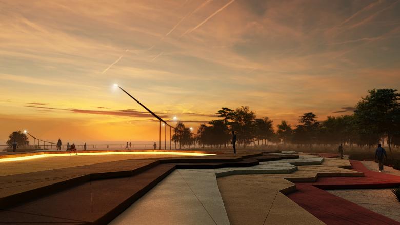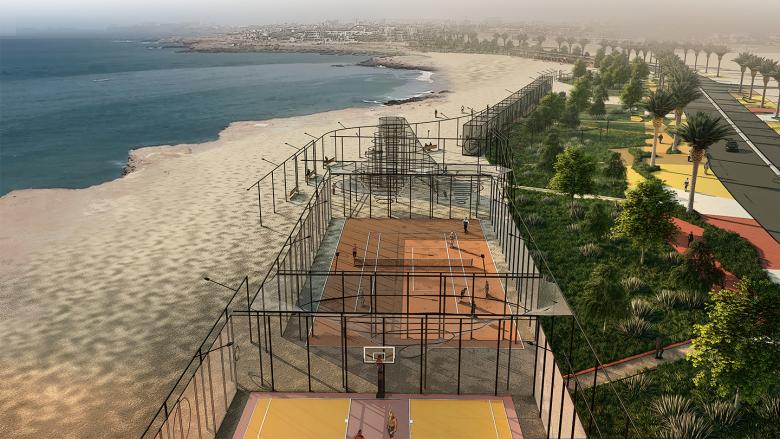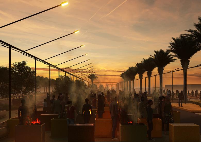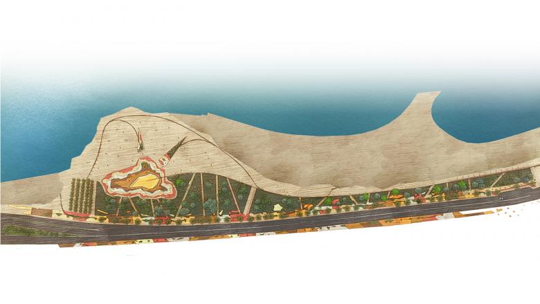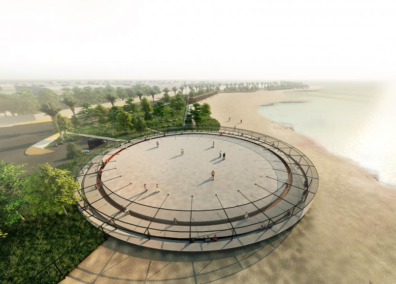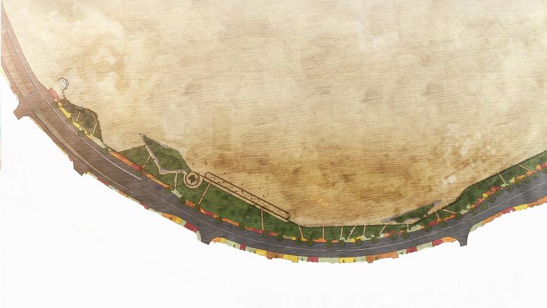 These "elements" are connected by a "cordon" that underlines the route as well as the instances proposed on the coastal front.