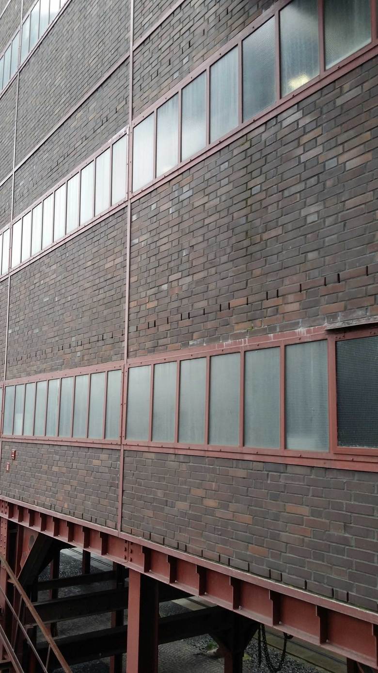Die Fensterkonstruktion besteht aus feingerahmten Stahl-Profilen mit Einfachverglasung aus Drahtglas. Zielsetzung ist eine denkmalgerechte Sanierung der Gebäudehülle sowie der Stahl-Bandbrücken.