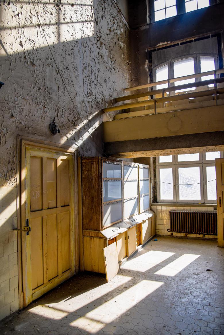 Der ehemals als Auditorium genutzte »Strahlenhörsaal« wurde 1961 im Zuge des Mauerbaus stillgelegt und aufgrund seiner grenznahen Lage zu Westberlin zugemauert. Heute befindet sich der Hörsaal annähernd im Zustand des Jahres 1961. Wie in einer Zeitkapsel überdauert, erzählt der Raum mit seiner Patina, seinen Spuren und seiner Aura von einer vergangenen Zeit.