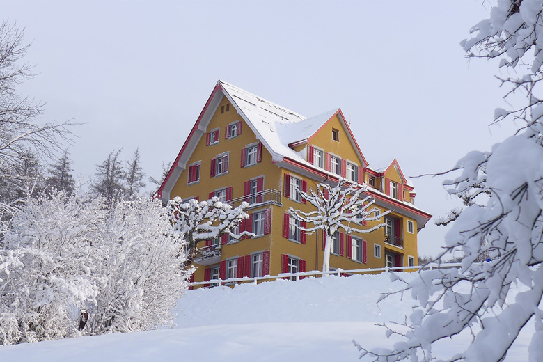 Das unter Denkmalschutz stehende Justinus-Haus wurde 1907 erstellt und seither mehrfach umgenutzt und umgebaut. Bei der in drei Etappen realisierten energetischen Erneuerung sind die Wärmeverluste der Gebäudehülle gezielt reduziert und die Energieeffizienz der Gebäudetechnik massiv verbessert worden. Die riesigen verwinkelten Dachflächen sind nun dick mit Steinwolle, die Lukarnen und Erker mit dem Hochleistungsdämmstoff Aerogel gedämmt. Aus denkmalpflegerischen Überlegungen wurden die Fassaden nicht wärmegedämmt. Dadurch ist eine hocheffiziente Technik nötig. Die fünf Erdsonden mit einer Gesamtlänge von 1'900m werden von 80 m2 unverglasten Kollektoren auf dem Dach unterstützt. Die für die Zertifizierung nach Minergie notwendige Lüftungsanlage ist im Estrich untergebracht und ist praktisch unsichtbar eingebaut.