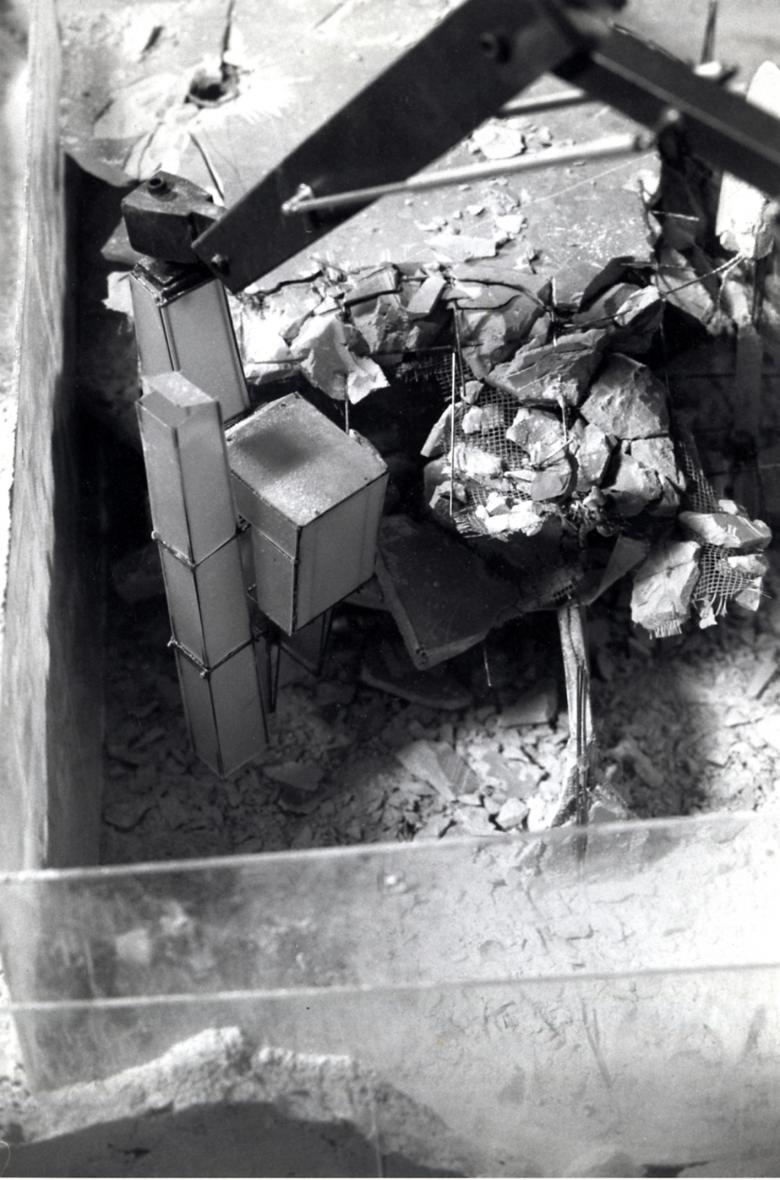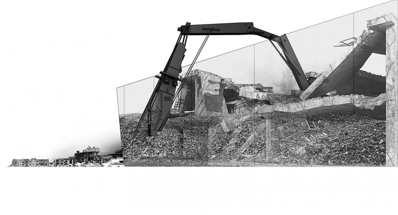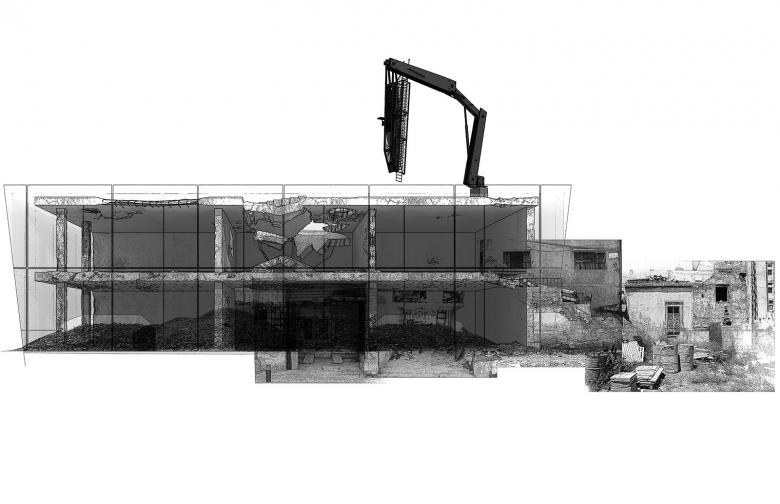 In 1991, as the newly proposed plan for the rehabilitation and re-construction of the Beirut Central District was being implemented, we proposed to turn the process of demolition of war damaged buildings in the city into a collective architectural experiment. Our proposed scenario “Evolving scars” was, first of all, a political act in opposition to the adopted conventional urban planning methods. The project consists of a temporary transparent skin that is implemented around the outer periphery of a ruin and a “memory collector” that deploys itself within the perimeter of the ruin while collecting data. The intensity of collecting information is translated by the gradual demolition of the existing edifice. The “remains” of the ruin are collected and contained within the transparent peripheral membrane. The method and rate of demolition becomes a consequence of the intensity of collecting information. The process ends with the complete demolition of the ruin, the physical saturation of the transparent peripheral membrane and the saturation of the memory collector. The proposed concept did not project the city into hypothetical future, nor did it propose the erection of physical structures in the city. “Evolving Scars” was instead an attempt to translate the demolition of buildings into an ephemeral architectural act.
