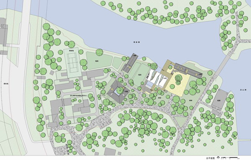 This guesthouse is located on the western bank of the Dianshan Lake in Qingpu near Shanghai. It consists of a clubhouse, three guest room buildings and gardens, which form a rural luxury resort for holidays and conferences. A river and a lake border the northern and eastern side of the plot. There is also a small dock on the northern waterfront. On the eastern part of the site grows a small forest of camphor trees and magnolias. To build in the delicate and rural Jiangnan (south of the Yangtze River) scenery, is to explore, how people can dwell freely and pleasantly - the pursuit of free rural life is our understanding of this site and this project. Our work will involve the following two aspects: on one hand, we should maintain the features of forests and water and assure that the construction will not destroy the harmonious relations between them and the site; instead, we should reinforce the topographical differentiation of this site through exploring its potential. On the other hand, we should make fine arrangements of the building and landscape. Since the building is considered as a 'organizer' of the scenery rather than as the focus of it, through which the potential of the landscape can be presented and life and nature are well connected. The four buildings of different types and sizes appear unrelated in the site; stretching over the dock is a clubhouse, which is partially elevated. The second floor takes an internally transparent quadruple volume and triple courtyard structure. The quadruple volume's spaces of different functions are covered with four irregularly shaped roofs with two pairs connected with or separated by a narrow courtyard. High up in the air at the waterside pavilion is the spatial centre and its simple white colour shows remembrance. Two guesthouses of different sizes are located on its north-eastern and north-western sides respectively. The north-eastern side one is parallel with the river and the north-western side one is perpendicular to the river. Their space arrangements are both in a linear tandem shape - two floors and two slop roofs. Their centre on the ground floor is a bright veranda style lounge with four open sides located on a waterfront platform. Meanwhile, at its south-western corner, a courtyard guesthouse surrounds a preserved beech tree. The inner courtyard is surrounded by a glass façade and has a pool with lotus flowers. The small guesthouses are simple and traditional like a farmhouse, which represents its rural nature. The four buildings have surrounded two different gardens respectively in the west and east. The courtyard close to the eastern side is secret and quiet while the western side becomes four small fields in different size where rice, wheat, vegetables and corn can be grown as the seasons change, thus creating a tranquil and pleasant farming atmosphere.