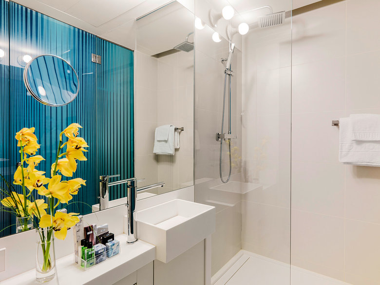 Jung ha equipado la totalidad de sus 80 modernas y luminosas estancias con la serie LS990 de mecanismos en Blanco Alpino, además de con teclados 4094 TSM de la serie FD-Design a juego y con serigrafía personalizada. El control de la habitación utiliza una fuente de alimentación KNX y un actuador de ocho salidas para otros tantos circuitos de iluminación, mientras que los teclados sirven para programar escenas ambientales. Se cumple así una de las máximas esenciales de la instalación eléctrica de los hoteles modernos: satisfacer las exigencias de diseño, funcionalidad y confort de manejo.