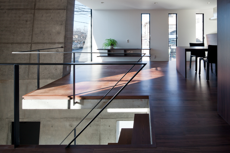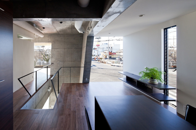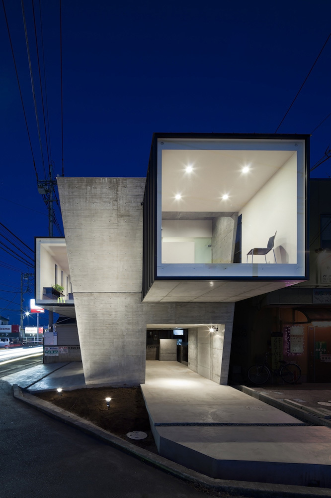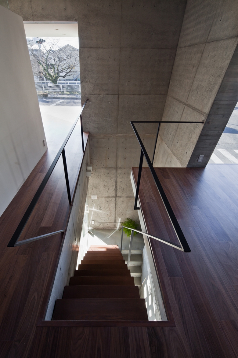 1Fをピロティー・2Fを居室とした鉄筋コンクリートと木造の混構造によって、交差点の大きなスケール感に負けないスカルプチュアルな造形を持つ建築を目指した.