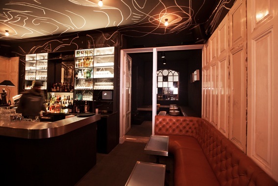 Entwurf und Planung der James T. Hunt Bar inklusive aller Einbauten. Wand- und Deckengestaltung vom Berliner Künstler Uli Hakel.